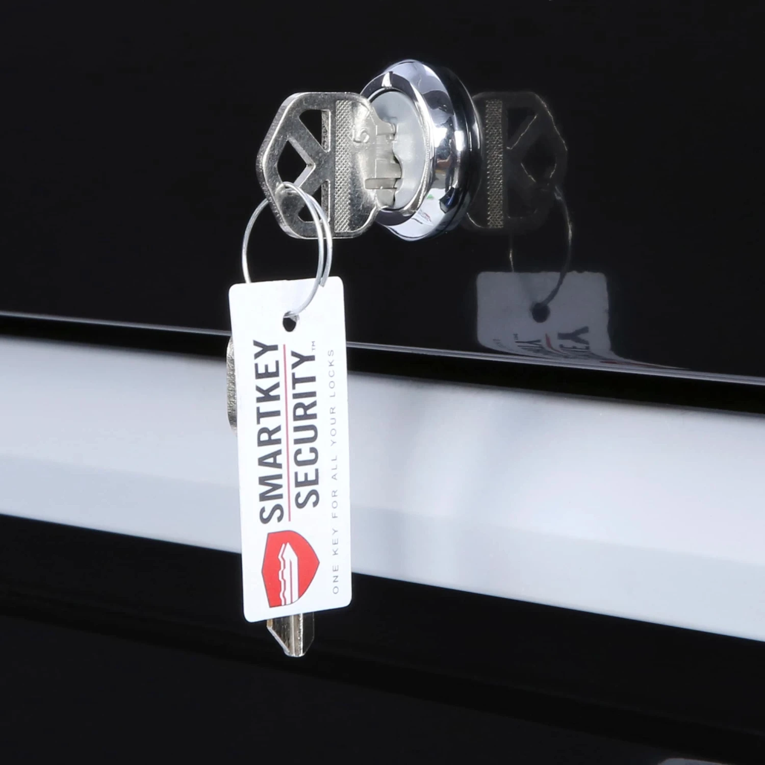 - Featuring Kwikset Smartkey locks that allow you to easily and quickly match your cabinet lock to your house, shop or store key, re-key tools included