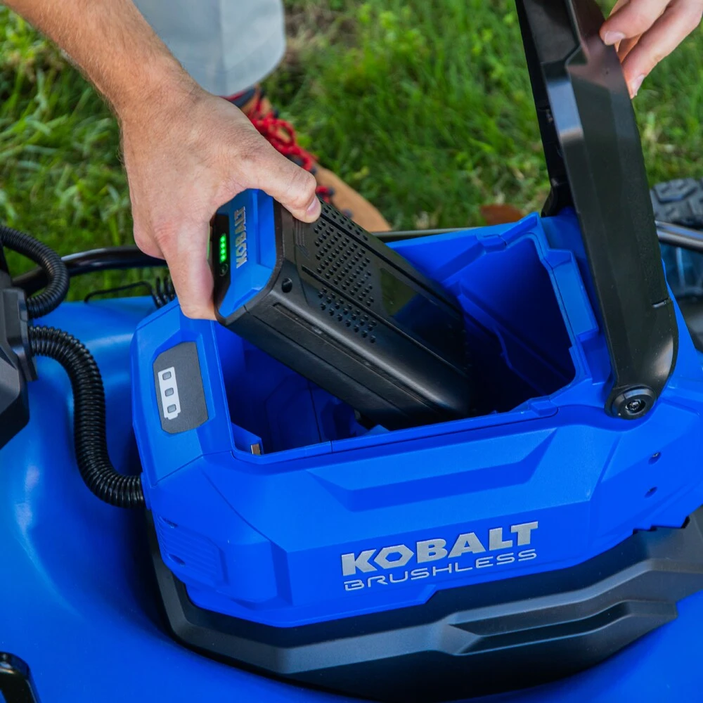 The Kobalt 40-Volt Max Brushless Motor Self Propelled Lawn Mower provides superior performance without the noise, mess, and fumes of gas. The 40V mower offers versatility with 3-1 cutting modes along convenient push button start and variable speed control. Offering up to 45-minutes of cut time, the 40V mower has you covered. The included battery and charger are compatible with all Kobalt 40-volt max tools and are backed by a 5-year limited warranty on the tool and a 3-year limited warranty on the battery and charger.