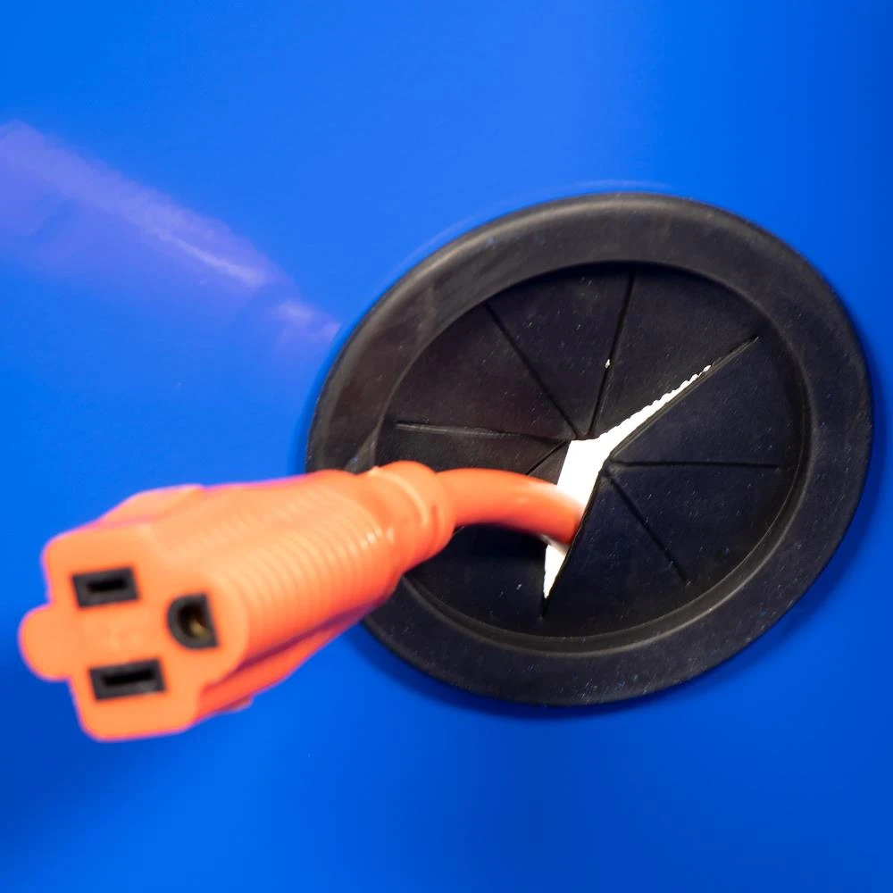 - Knockout in rear of box provides easy access for power cords, enabling battery charging, while the box remains securely locked