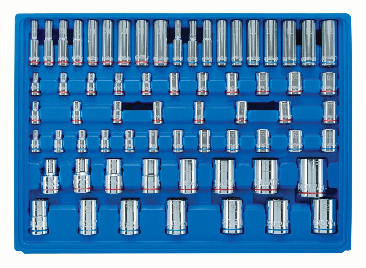 - The 117-piece socket assortment includes 6- and 12-point features, shallow and deep depths, metric and SAE (standard) measurements and 2 spark plug sockets