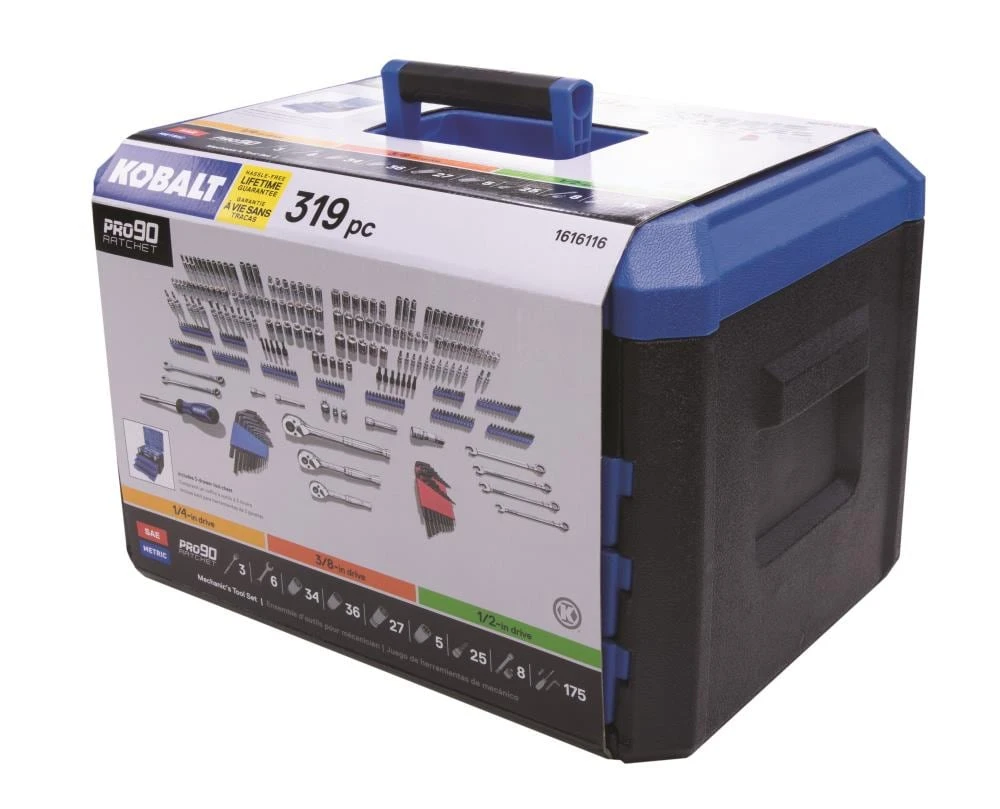 Kobalt Mechanics Tool Sets 319-Piece Standard (SAE) and Metric Combination Polished Chrome Mechanics Tool Set (1/4-in; 3/8-in)