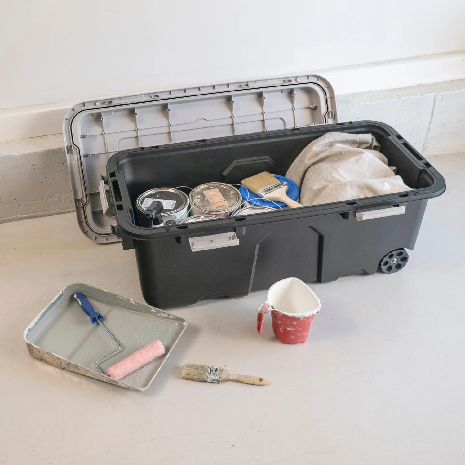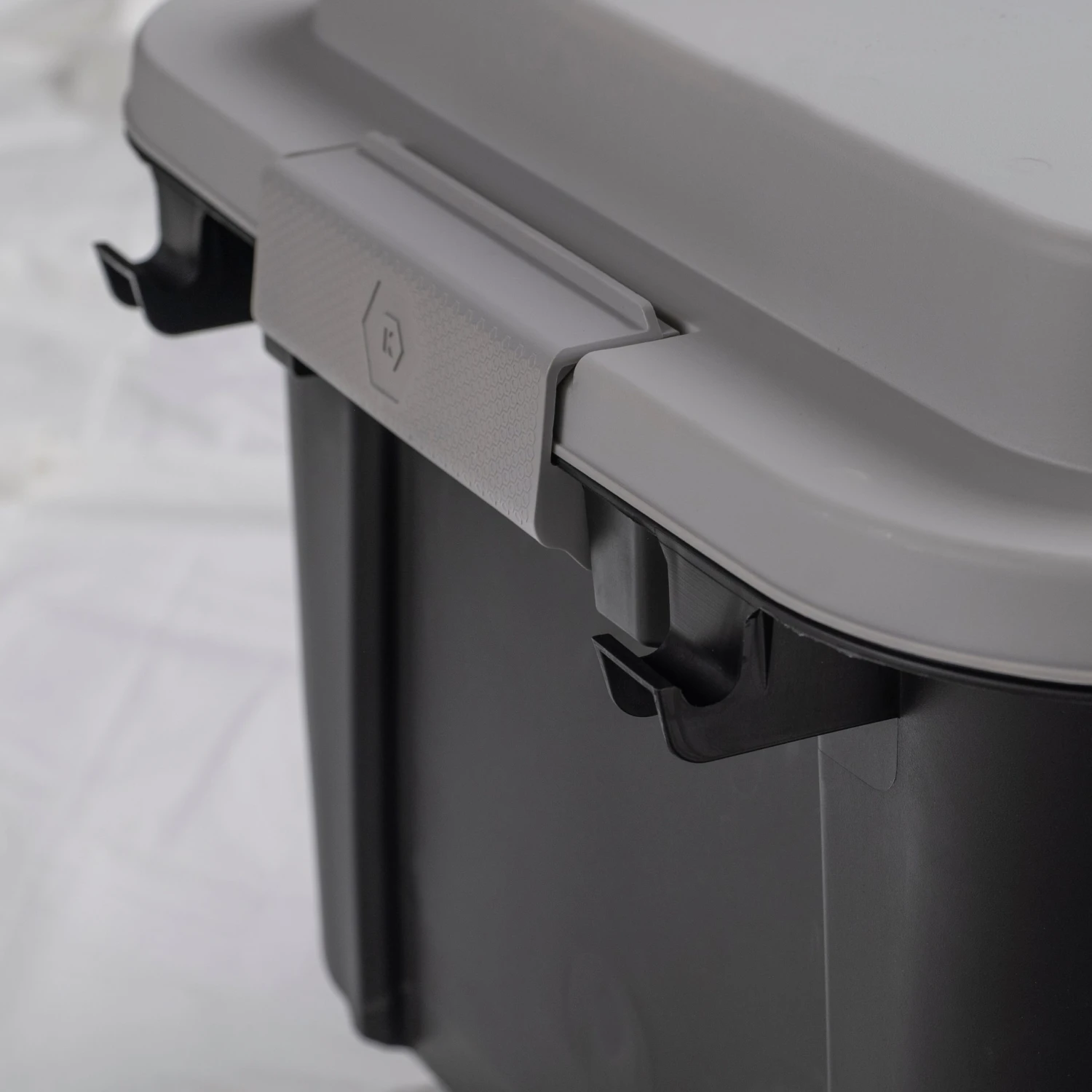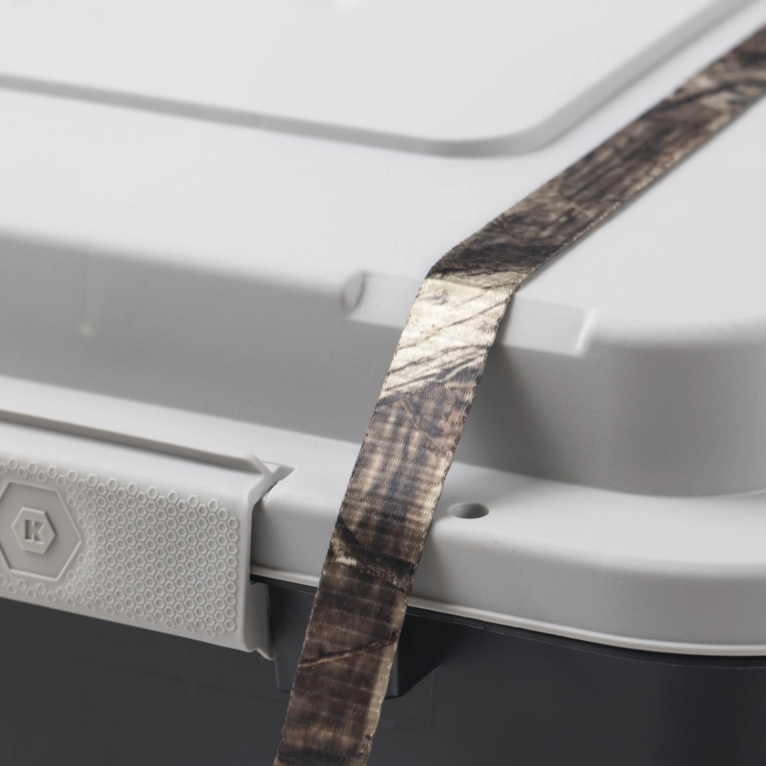 - Strap indicators on the lid can make tying down the storage bin more secure