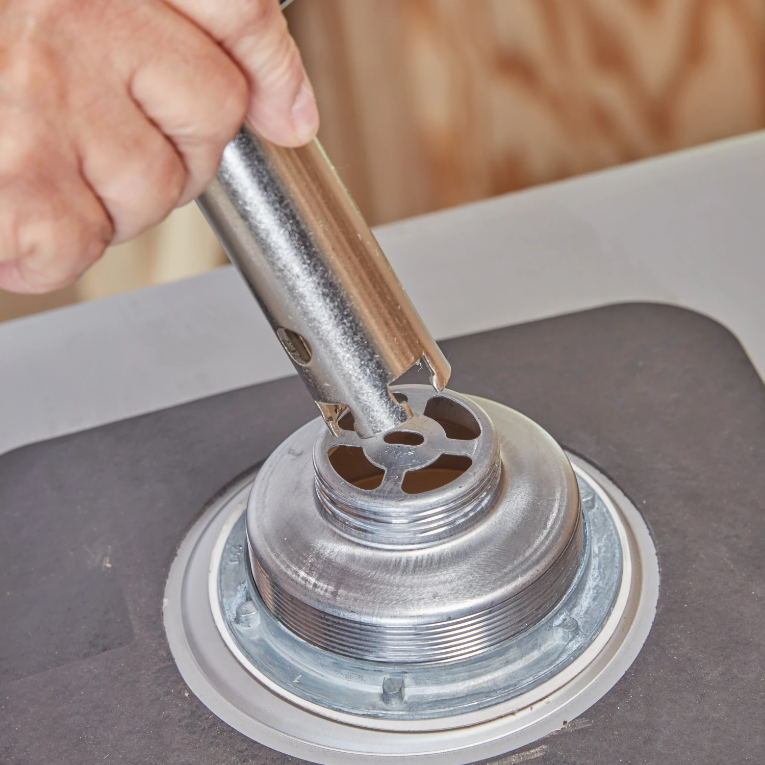 - Holds basket strainers in place during installation