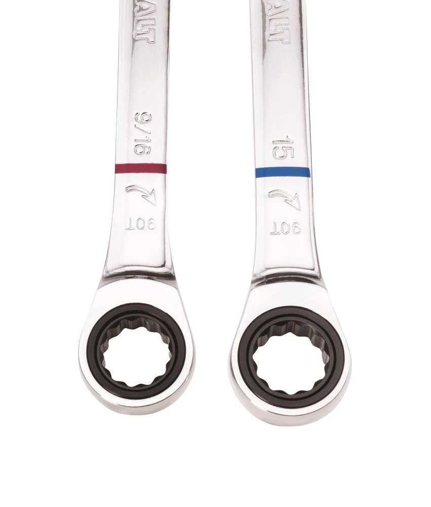 - 90-Tooth ratcheting end provides 4° of arc swing