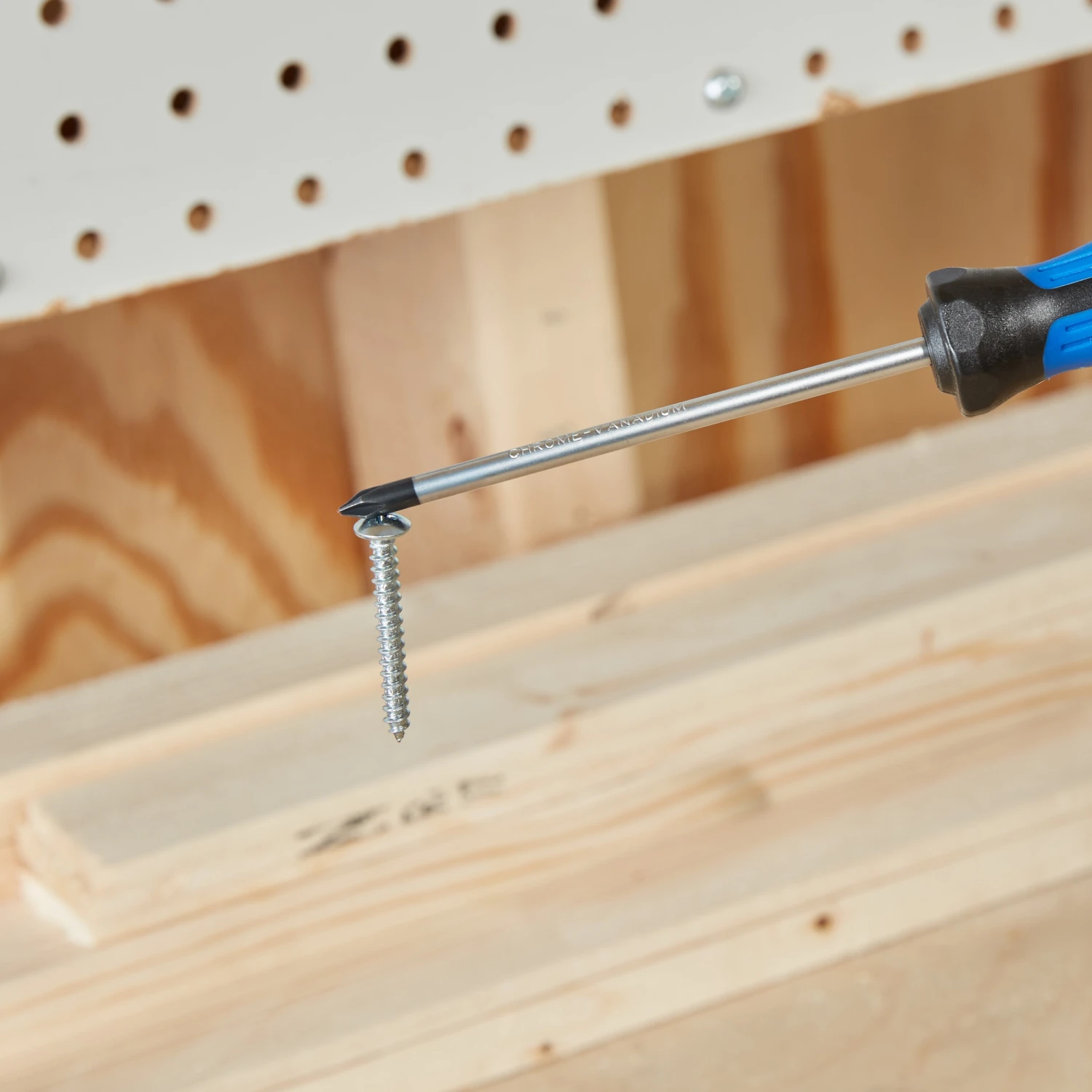 Your screwdriving needs are met with this convenient 10pc set. This kit includes one of each of the following sizes: 1/8 x 4, 3/16 x 4, 1/4 x 6, 5/16 x 6, 3/16 x 6 cabinet, #1 x 4, #2 x 6, #3 x 6, T10, and T15. The chrome vanadium shaft offers durability, while our bi-material handles give you a comfort grip when tackling your household or worksite tasks.