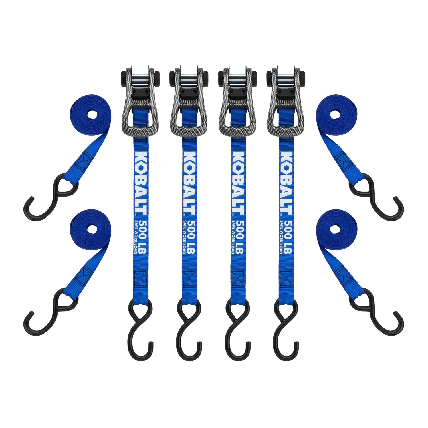 The Kobalt Diamond Plate Tie Down is stronger and more user friendly than standard ratcheting tie downs. They can be used for lighter loads often hauled in a pick-up truck or on a small trailer such as dirt bikes, ATV’s or lawn tractors. The SmartWeb™ technology provides webbing that is stronger and more abrasion resistant than standard webbing. The product has an innovative, lightweight but extra sturdy and durable composite design. It is packaged in our innovative, reusable EcoCase for easy storage.