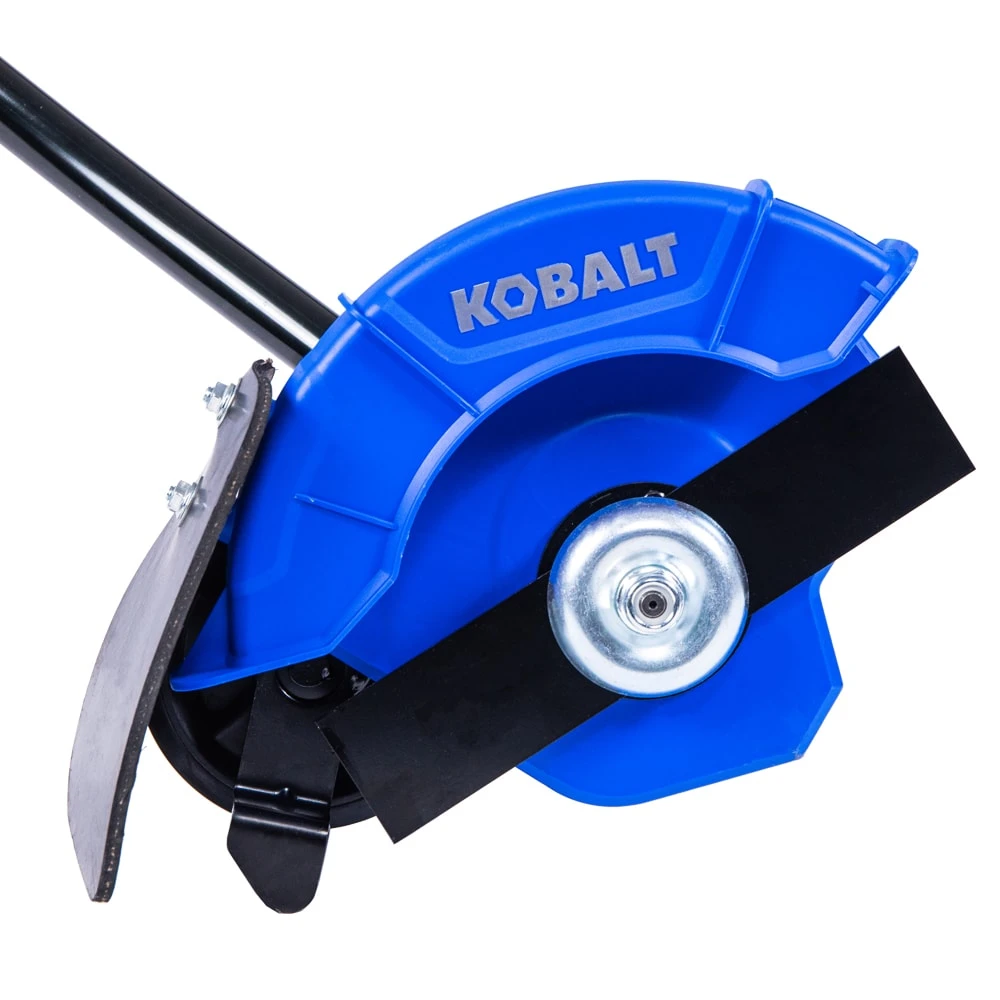 The Kobalt 40-Volt Max Brushless motor Multi-Head Edger creates clean and precise edges with ease. The ergonomic curved shaft provides better balance. Equipped with a variable speed trigger, a lock off switch and a guide wheel with a depth adjustment knob. Part of the 40V Max Multi-head family of products and backed by a 5-year limited warranty on the tool.